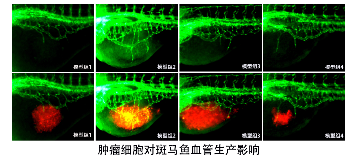 04.不同肿瘤细胞或同种肿瘤细胞不同药物处理对斑马鱼血管影响